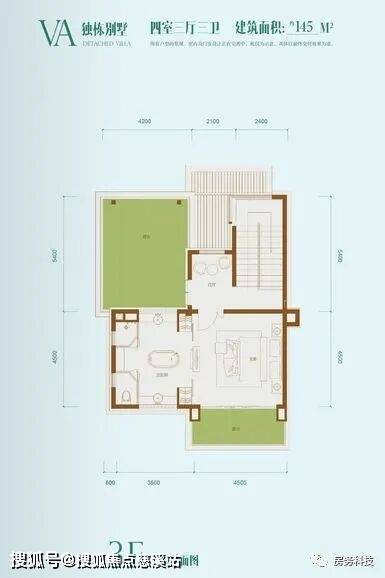 VA户型 独栋别墅 四房三厅三卫 建筑面积145㎡