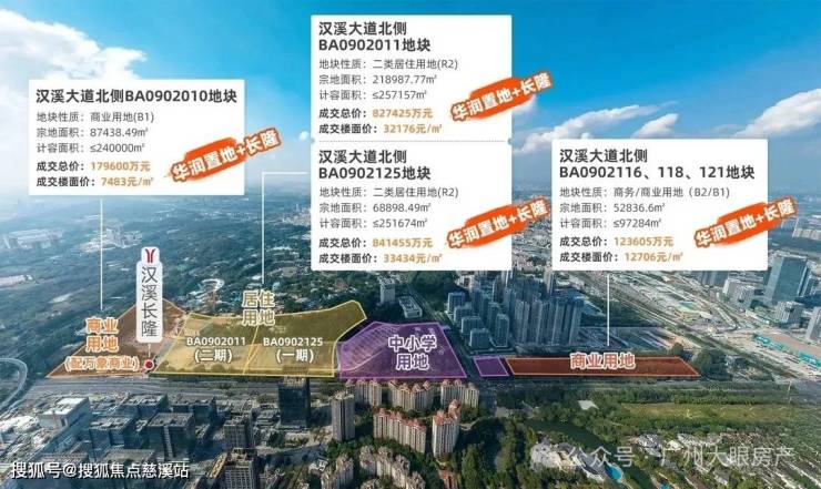 在售的项目一期,紧靠中小学用地,适合期待「目送式上学」的鸡娃家长,二期,位置上比较靠近汉溪长隆地铁站和万象系商业用地。
