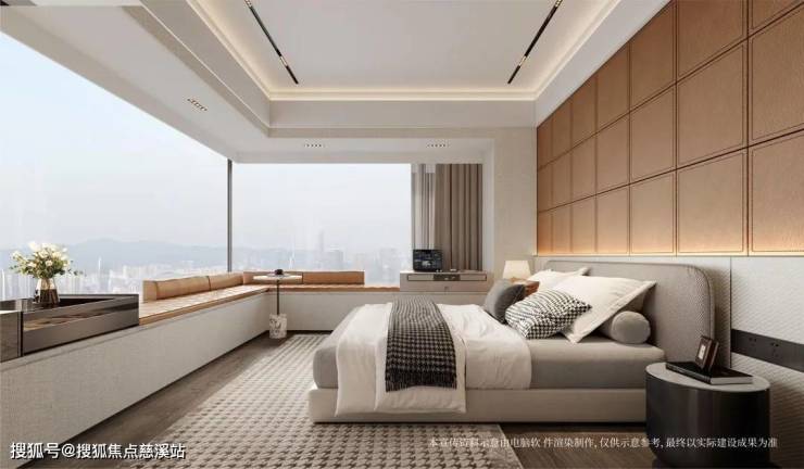 这回二期新上的产品,主卧基本全是采用全新的研发成果——天空之境,即270度U型无遮挡柱的全画幅飘窗景观。