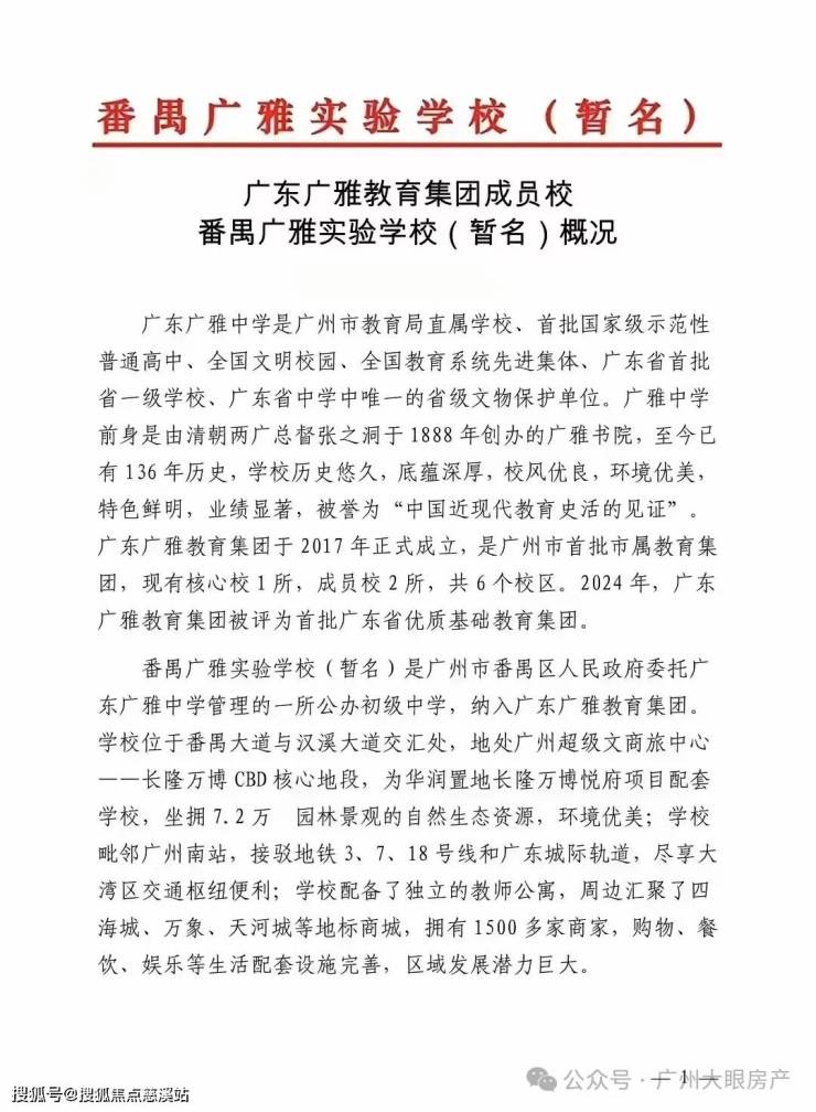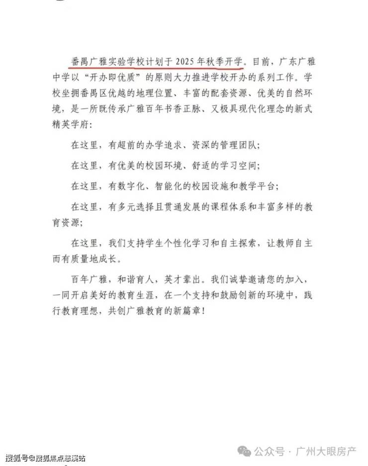 该校预计2025年9月开学,由广东番禺中学统一管理,也是广州第一所全课程改革实验学校。