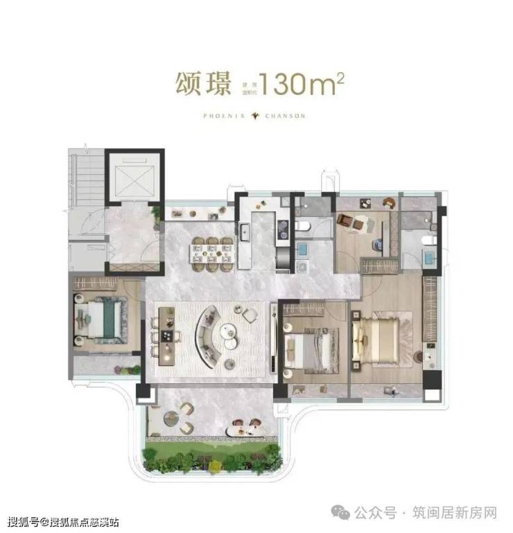 - LDKG方厅体系:近66㎡空间搭配(餐厅+厨房+客厅+空中花园),大方厅设计享墅级体验。