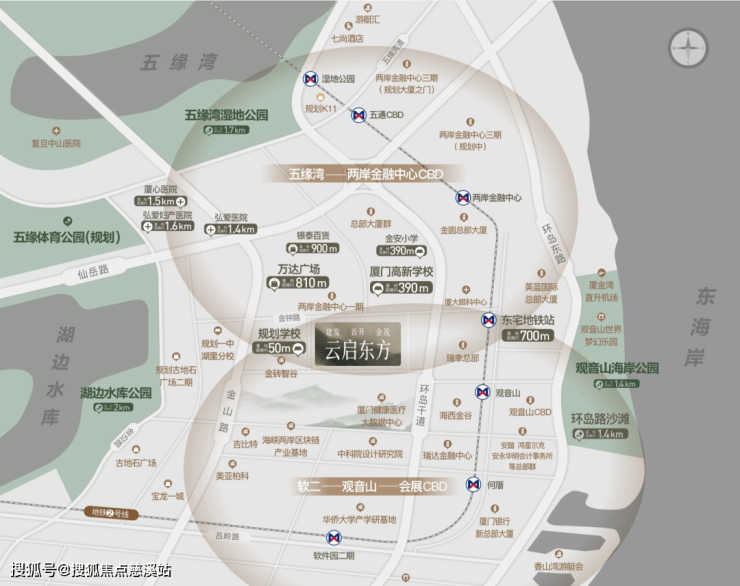 配套:紧邻万达-银泰、K11(在建中)等商圈,近地铁2号线(直线距离东宅站约700米),约2公里范围内拥揽弘爱医院、厦心医院等医疗,毗邻五缘湾湿地公园、湖边水库公园、观音山海岸公园等休闲。
