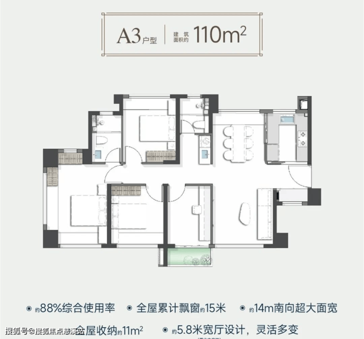 楼栋与户型:共13栋楼,层高26-29层,户型面积段为104-110-127-137-143平方米及179平方米的第四代住宅,得房率较高,部分户型可达88%-100%。