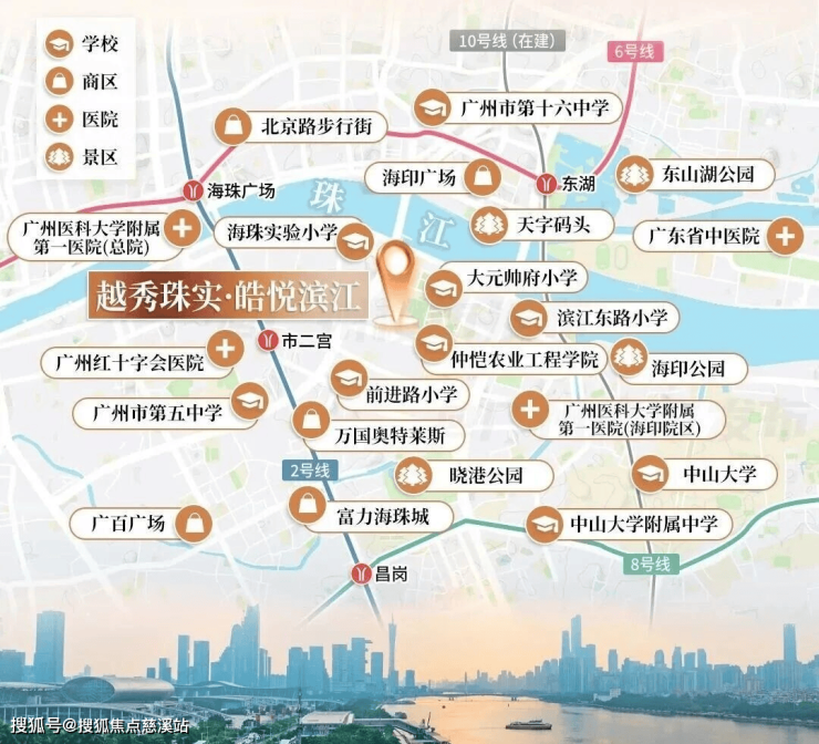 2教育方面:地块不远处就有海印南苑幼儿园、名都幼儿园等;小学方面,就有大元帅府小学、滨江东路小学等学校,在海珠有不错口碑。初中则对应五中滨江学校和南武中学等强校。