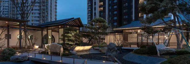 位于天津市滨海新区开发区第三大街的格调宝珀花园,用新中式的设计手法,将传统中式大庭院才能表达的园林场景全部展现在了宝珀花园的核心园林—松庭中,重新灵活展现了中式园林小中见大、别有洞天之巧妙。云影渡月,将小池分为东西两部分,扁舟舫、望月亭、湘江落叶等主要景观,环伺与小池周围。无论站立在哪个主景之中,向小池的另一侧眺望,整幅开阔的画卷皆纳眼底。