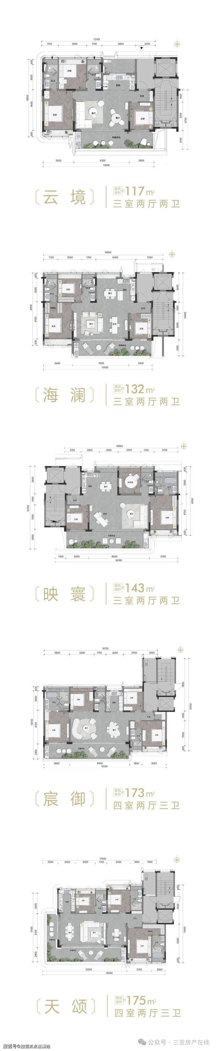 产品由绿城青和设计院与蓝颂景观大师联袂打造,清水湾首家全新4代住宅,以1.0低容积率匠筑14栋7层洋房,规划117-175㎡奢适空间,精准匹配追求高端品质旅居的塔尖人群需求。