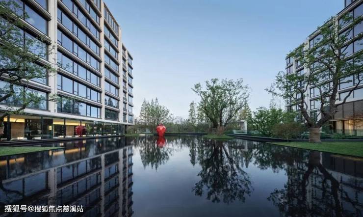 以近千平的水景为基底,上面矗立着一个红苹果雕塑,这样宁静的空间融入一个灵魂摆渡的雕塑,瞬间就有了一股向上的生命力,传递除钢筋水泥的安全性外的一种温暖的力量。单这一方空间,贤坤花园就足以打动任何一个来到这里的参观者。