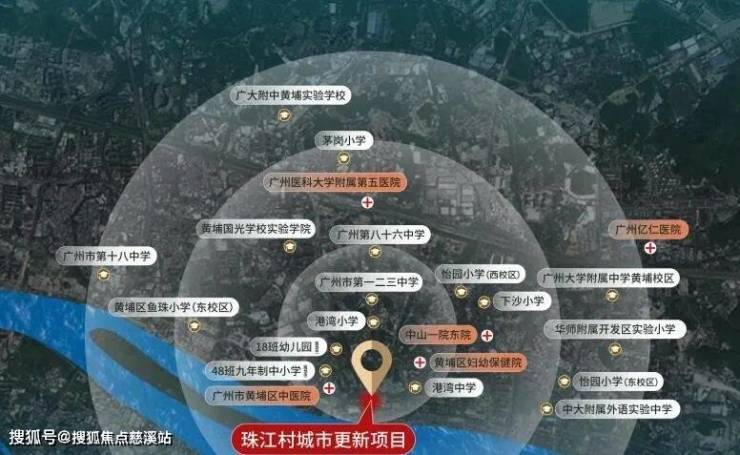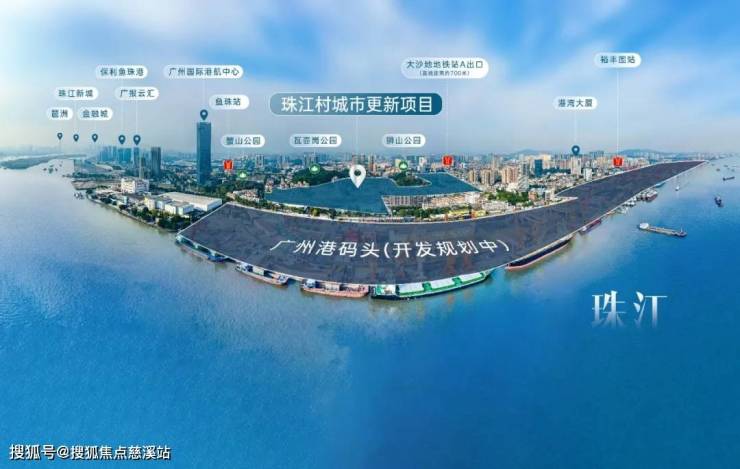 项目位于黄埔区鱼珠核心CBD板块,距离港航大厦直线距离仅约800米,5号线鱼珠与大沙地之间,是老黄埔旧改中最靠近天河的项目。