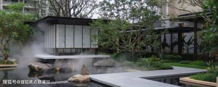 顺着石阶往下, 中式闲庭的悠然意境便随视野渐次铺展,社区园林的层叠绿意与错落景致尽收眼底,很是惬意 。