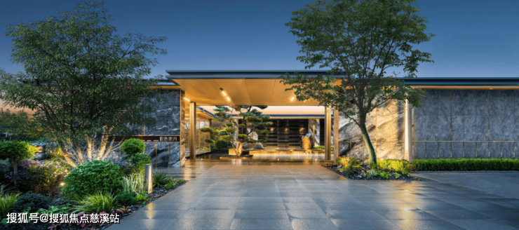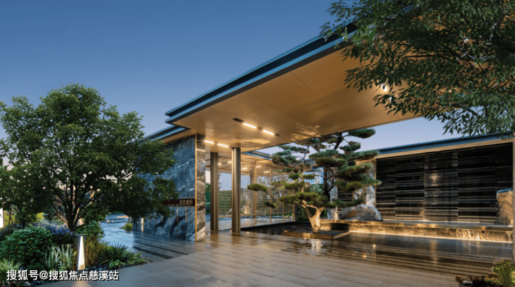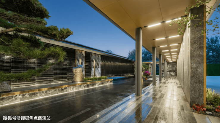 深入连廊,迎面是一棵树龄估计约50-80年迎客松,从泰山选材原冠移植,造价高达30余万。不吝成本匠心打造景观细节,让造型别致的迎客古松,仿佛在静静迎接每一位归家人。
