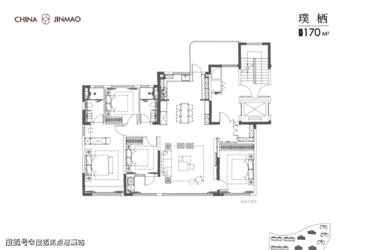 170㎡(精装大平层):国际范+东方韵味奢阔四居+北向观山露台