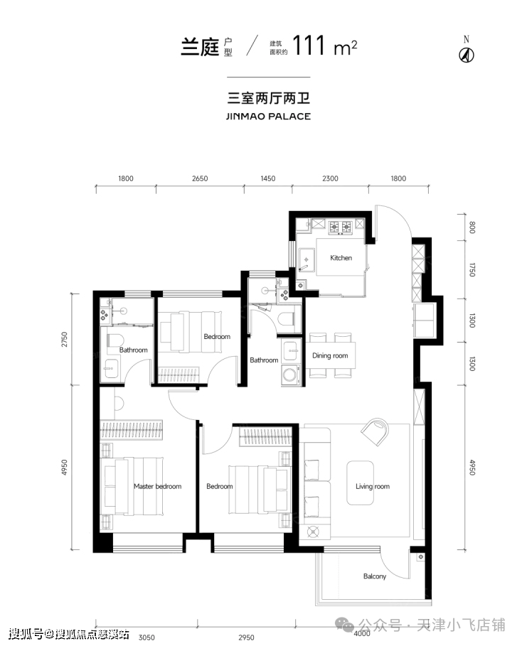 A户型 111㎡ 360-420万元 3室2厅2卫 布局紧凑实用,适合首改家庭