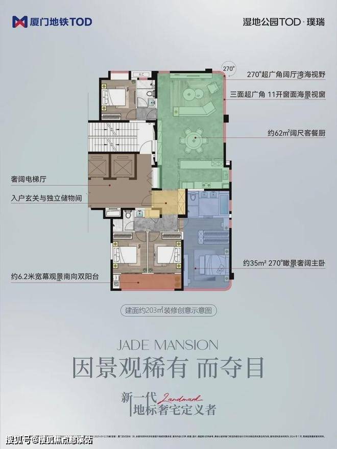 湿地公园TOD203㎡位于4号地块,是岛内新房罕有的纯粹大平层地块,约52m的超宽楼间距(4-2、4-5),五缘湾昂贵的11扇窗,引海景入室;约62㎡奢阔客餐厨,坐拥270°IMAX湾海环幕视野,震撼人心的大尺度空间;星级套房主卧,270°全景舱视野;约6.2米宽幕阳台,将湾芯CBD繁华盛景尽收眼底。