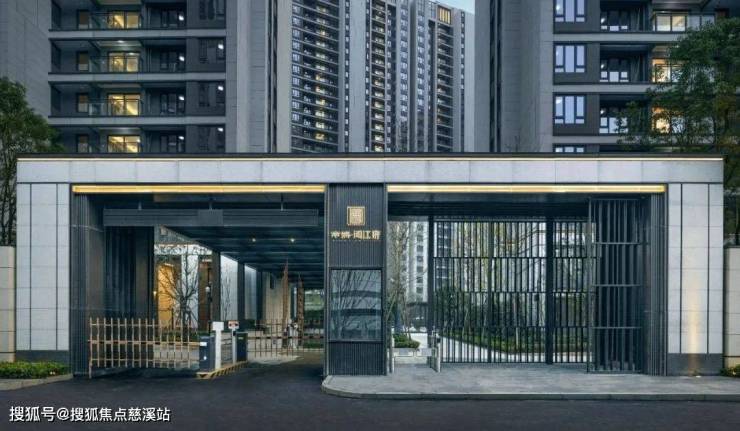 入口作为小区的标志性建筑,采用具有昭示性的坡屋顶,让业主于此产生强烈的归属感。整体延展面纯净简洁,色调柔和,大挑檐的金属屋面,以现代的手法展现东方庭院的古典韵味。