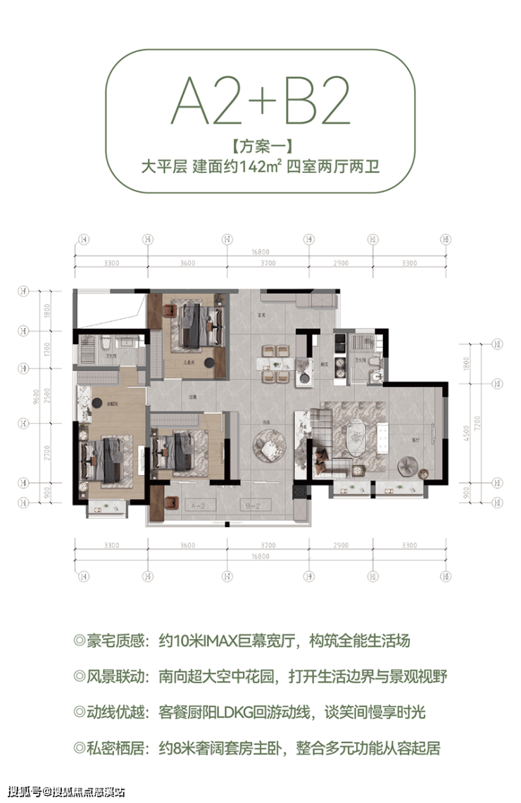 具体来说,A-2户型(建面约60㎡)以独立入户花园和客餐厨一体化设计,打造宜居范本;B-2户型(建面约84㎡)则通过通透宽厅和观景阳台,让阳光清风入室做伴;B3奢阔大平层(建面约89㎡)以高得房率和阔绰宽境,提升居住品质;A-2+B-2大平层(建面约142㎡)则通过豪宅质感和私密有序的设计,满足家庭成员的多元需求;而B-3+B-3空中微墅(建面约178㎡)更是以人性规划和品质宜居的设计理念,打造出一处尊贵的居住空间。
