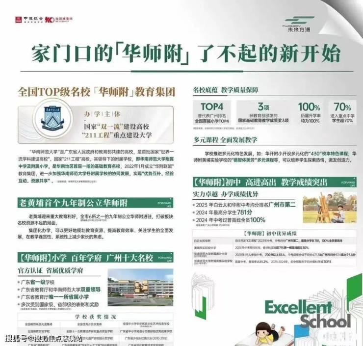 老黄埔首个 9 年制 “华师附” 教育体系,华南师范大学附属学校作为双一流、首批国家 211 工程大学的附属学校,教育背景强大,资源丰富。华师附小升学率 100%,重点中学录取率超 70%;华师附中更是被誉为 “神学院”,教育成果显著。