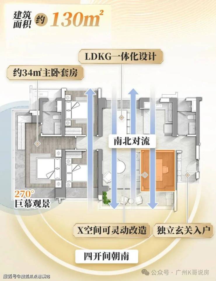 社交阔厅|半开放式中西厨,LDKG一体化布局从容有序