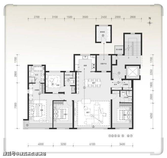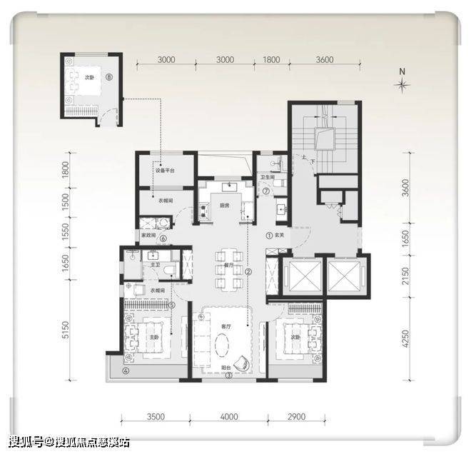 以建面约112㎡三居户型为例,不仅主卧面宽可以做到3.5m,更有独立家政间,这都是建面约130㎡以上户型才有的空间尺度。