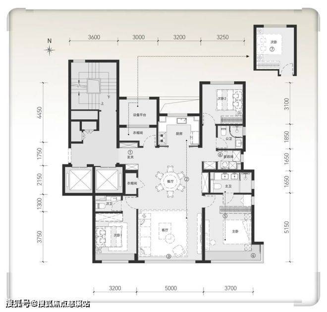 特别是建面约112㎡三居两卫和建面约148㎡四居三卫户型,赠送的设备平台没有按常规思路安排成可有可无的家政间,而是通过匠心设计,将设备平台外接北向衣帽间,形成将近10㎡的独立卧室,这个神来之笔直接把“外敬”升格为“主菜”,“省出来”的空间,让主卧、客厅尺度更从容。
