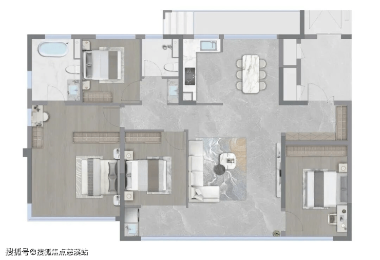 项目小高层户型有127/143㎡;洋房有127/143/169/189㎡。首层带独立庭院;顶跃带空中庭院,有超大露台。
