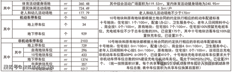 根据发布的经济技术指标,住宅88310.84平方米,架空层743.59平方米,总户数658户,总人数2106个,机动车停车位963个(地面34个、地下929个)。非机动车位2103个(详细数据看上图)。