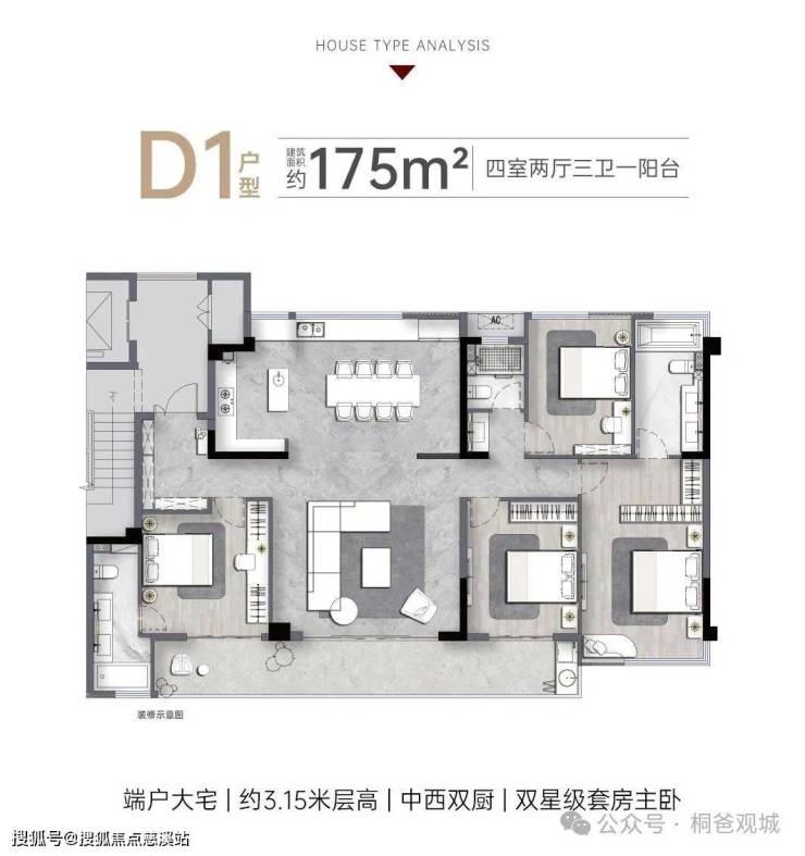 115㎡四房两厅三卫,总价300万左右,125㎡四房两厅三卫,总价340万左右,143㎡四房两厅三卫,总价390万左右,175㎡四房两厅三卫,总价500万左右。