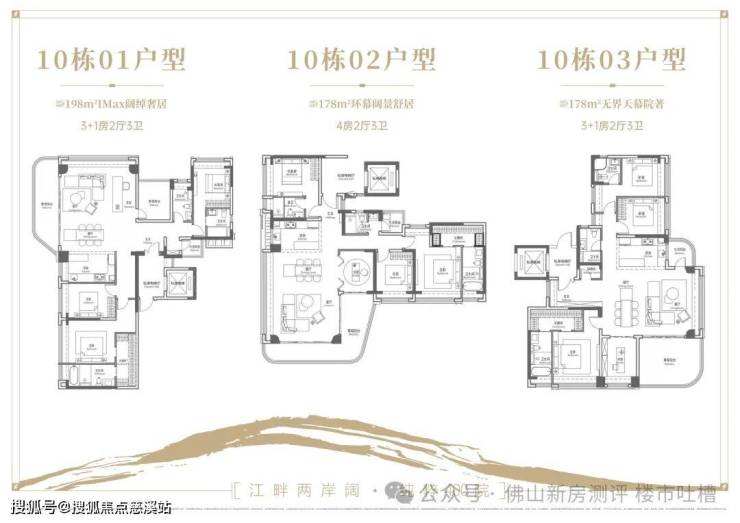 10栋是3梯3户产品,户型有178、198㎡两个,178㎡四房均价1.6-1.8万/㎡,198㎡四房均价1.7-1.85万/㎡。