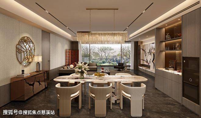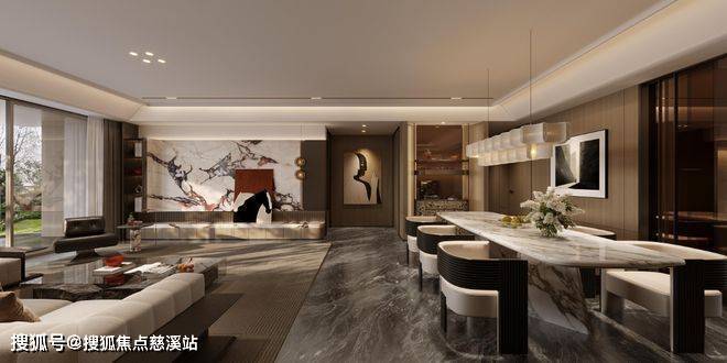 公区以海派为笔触,染现代之气韵,融汇成一方优雅生活的序章