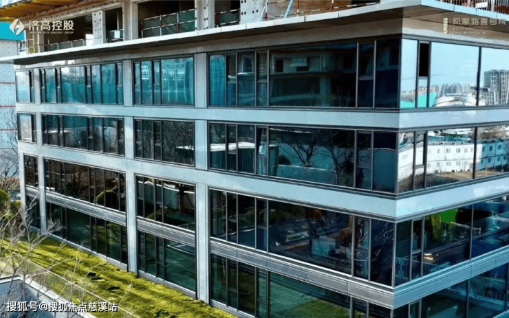 外立面:石材+铝板+玻璃幕墙组合,窗墙比70%,LOW-E三玻两腔玻璃(隔音降噪)。