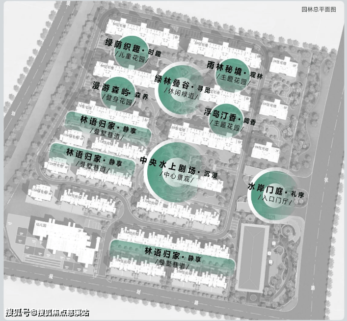 盛海棠以东方美学为魂,度假休闲为肌体在园林设计中融入岛屿、森林、海浪等自然元素规制两轴、三片区、多节点度假式园林