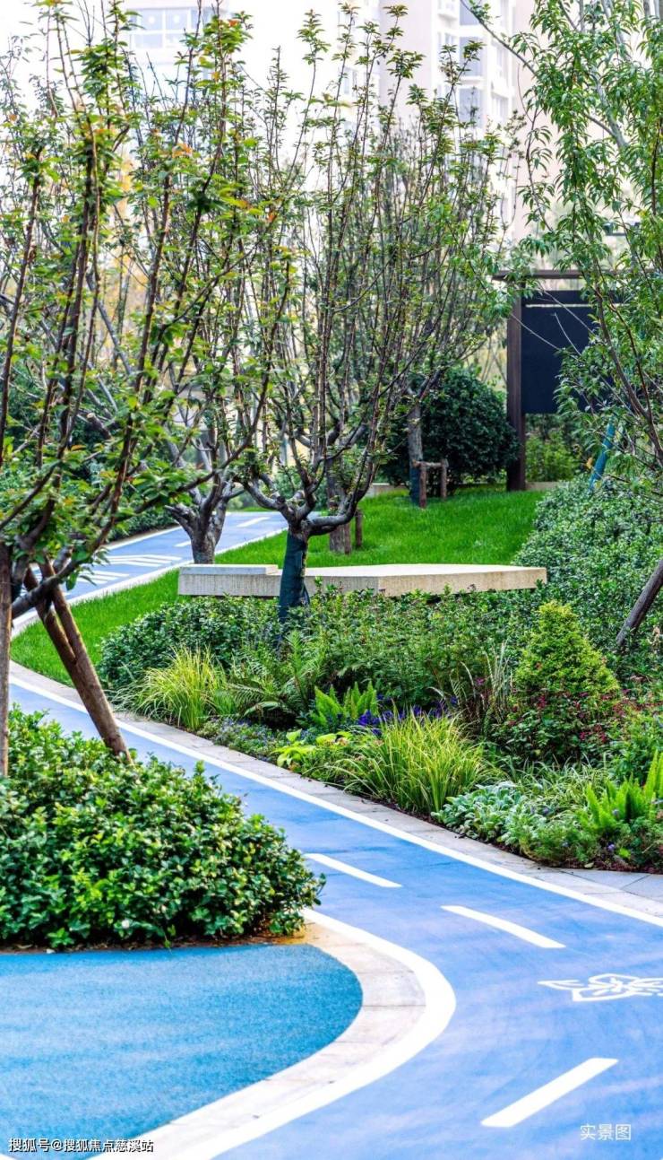 穿越大气的城市府门入内,自然灵动的铺装与植物组团相结合,营造意境的通达体验,也是社区未来的恬静生活的指引。