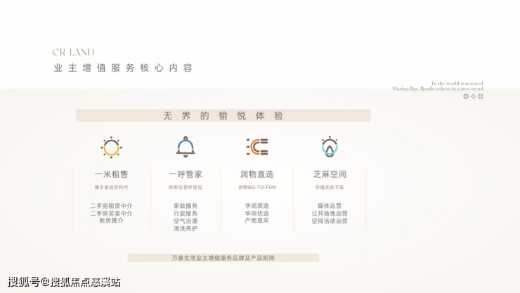首先,增值服务的核心内容包括:一米租售、一户管家、润物直选和芝麻空间,这些增值服务是为贴心考虑到业主日常生活中随处遇见的场景,进而全面提升居住品质。