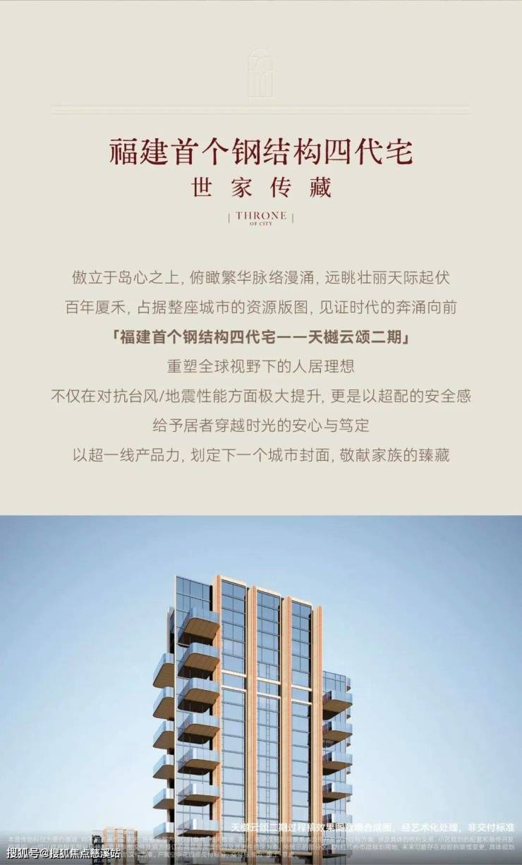 天樾云颂以约150米超高层重塑将军祠板块天际线,是岛西十年唯一纯大户型社区,以“第四代住宅”基因突破传统空间范式。项目主推建面约199㎡~575㎡纯粹高阶大平层产品形态,仅205套,营造极致圈层属性。全系配置空中庭院,重构立体生态感知,回应闽南埕院“家家有园、层层有景”的传统诗意美学。
