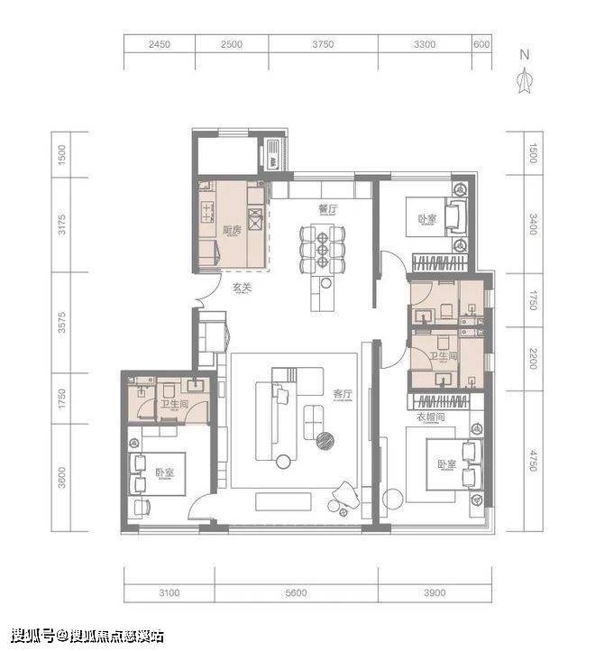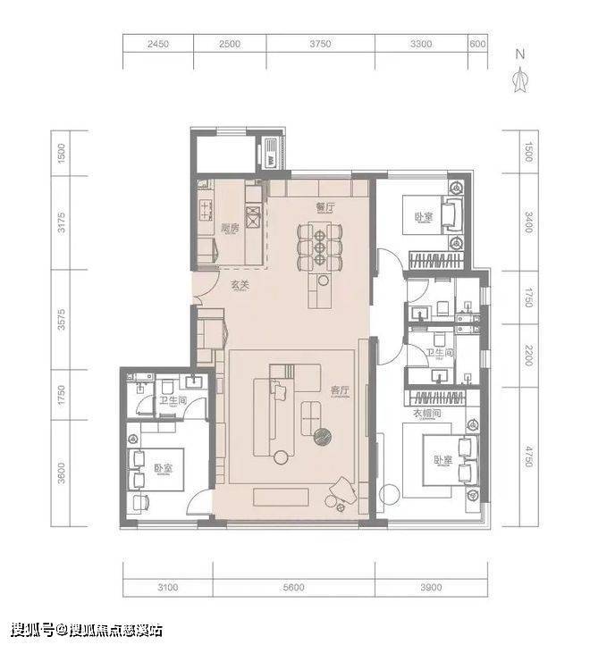 奢阔双厅:客厅南向约5.6米大面宽,阳光清风相伴。同级罕见明窗餐厅打造,南北通透,可摆放岛台、打造储物空间。