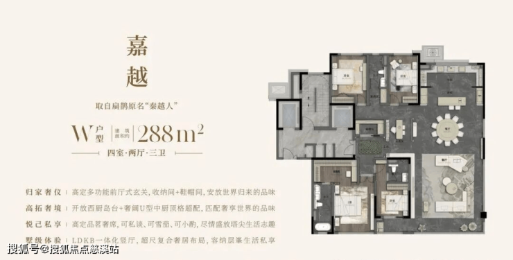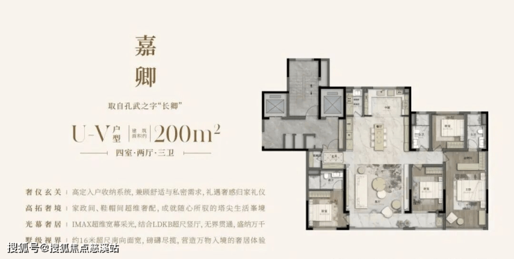 户型设计:户型面积为150-237㎡,包括四室两厅三卫、四室两厅两卫等多种户型,满足不同家庭需求。部分户型打造了实体样板间,如239平户型,室内打造3.3米的层高,南向拥有约19.8米的大尺度景观面,形成了超大窗墙比,搭配270°LDKG的广角边厅,视野和采光无敌,通透性满分。
