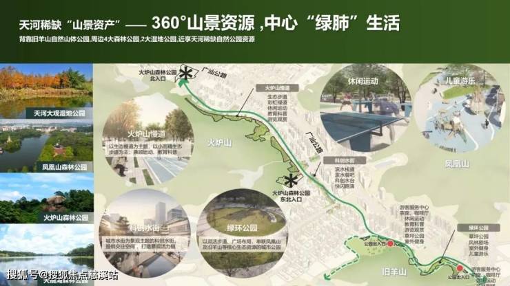 火炉山森林公园、凤凰山森林公园、天麓湖森林公园,引山入园,山园相容,打造广府自然家。