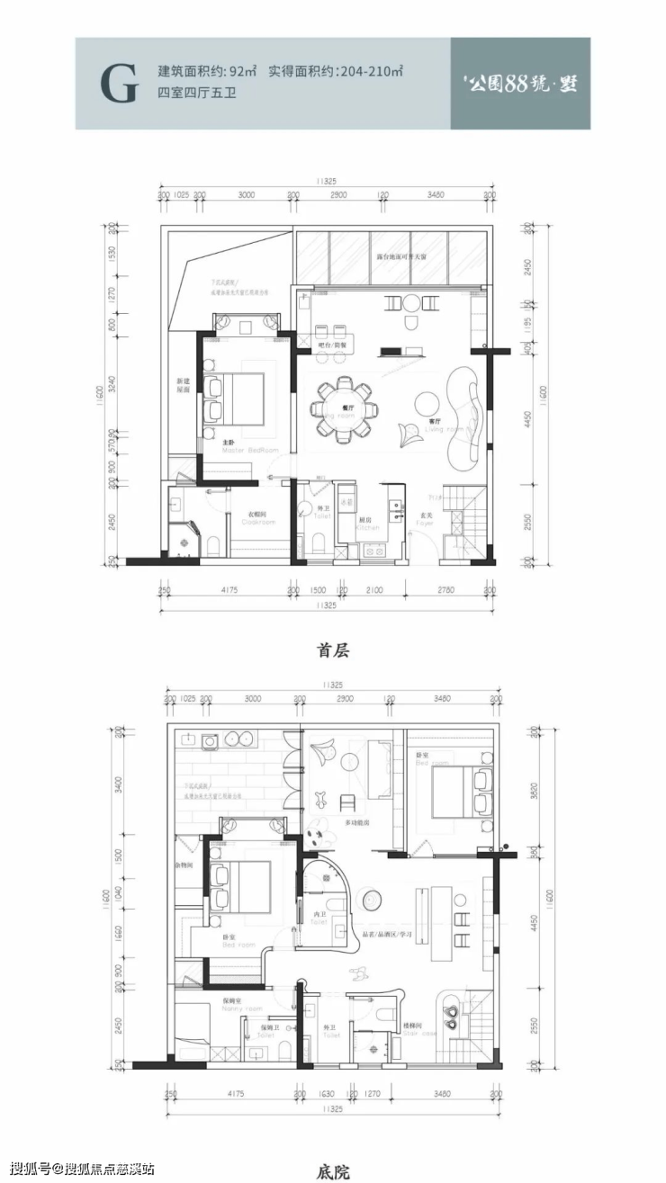 双庭院 双主卧套房设计