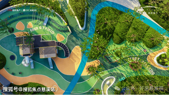 • 儿童乐园(探险丛林/戏水乐园等):建面约1000㎡的“自然教育剧场”跃然眼前!丛生元宝枫、香樟林营造四季野趣,攀爬网、树屋滑梯、溪涧水景与雾喷装置等无动力设施,让孩子们在探险与戏水中启蒙成长,构建沉浸式亲子互动空间。
