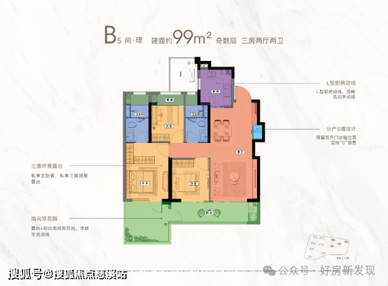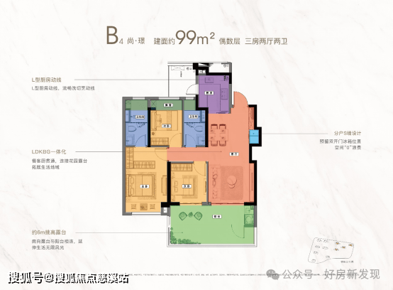 建面约99㎡(三房两卫)|主城可入手的低门槛四代宅|露台设计(分奇偶层)