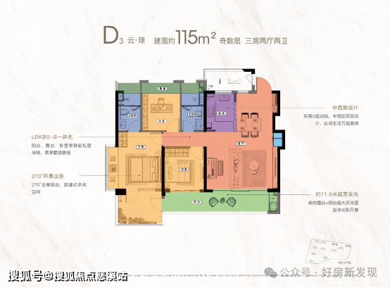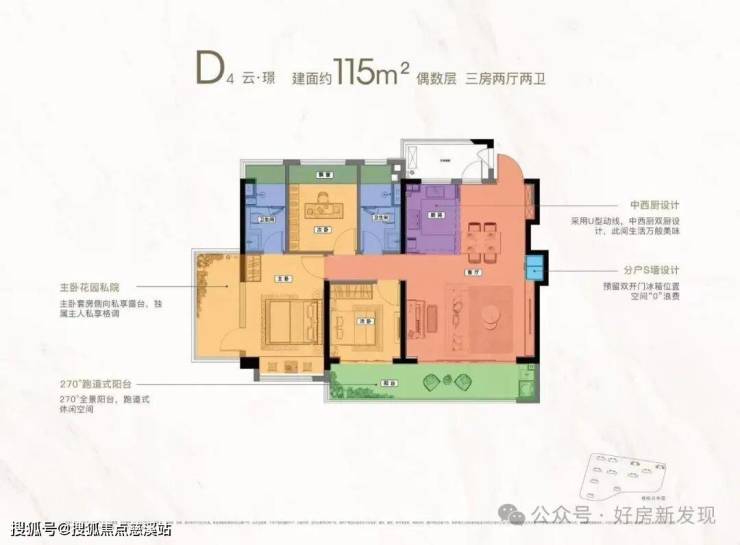 建面约115㎡(三房两卫)|115边户满足130的空间居住体验|露台设计(分奇偶层)