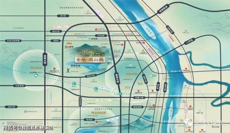 金地·湖山樾位于长沙湘江新区,观音岩湖岸一线,坐拥湘江新区与高铁西的地脉价值,享交通、商业、教育、医疗、生态等城心资源配套。