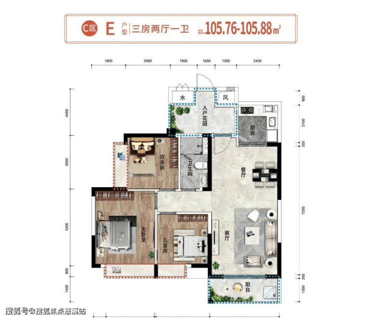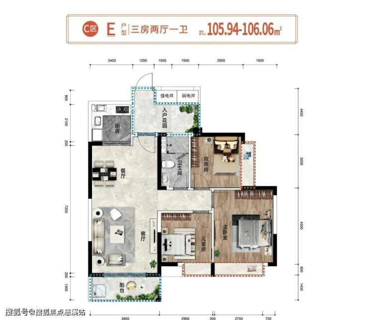 梯户比:两梯四户或 两梯两户
