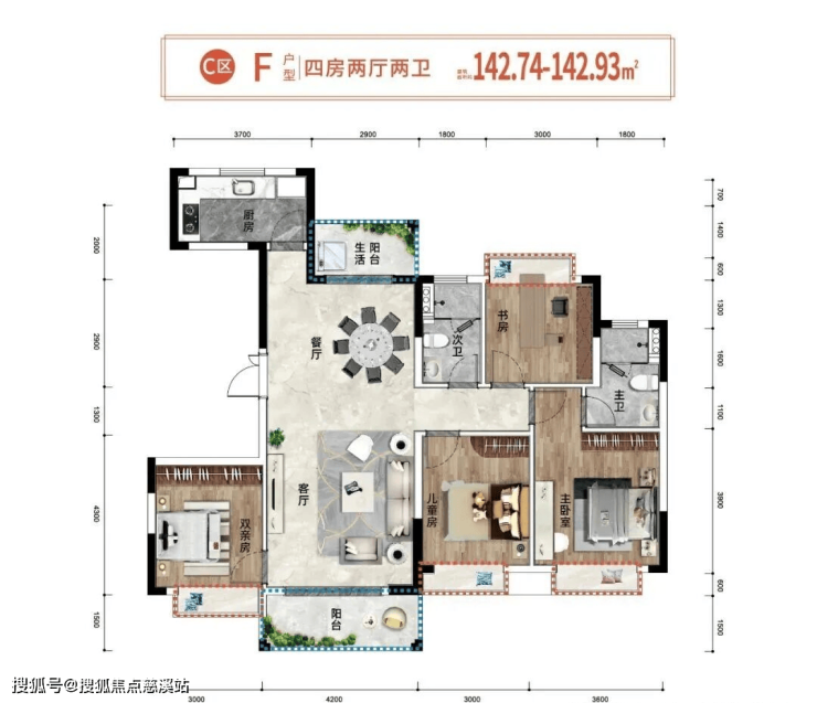 总户数:5栋住宅共𝟑𝟕𝟎户