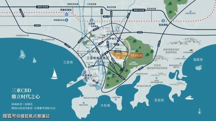 海螺岭、临春岭、凤凰岭三山环抱,步行范围内,海旅免税城、大悦城等繁华商圈举步即达,市井烟火与国际时尚在此交织;直线距离三亚湾仅约4公里、距大东海约5公里,真正实现,出则拥揽海湾度假,入则尽揽主城繁华。