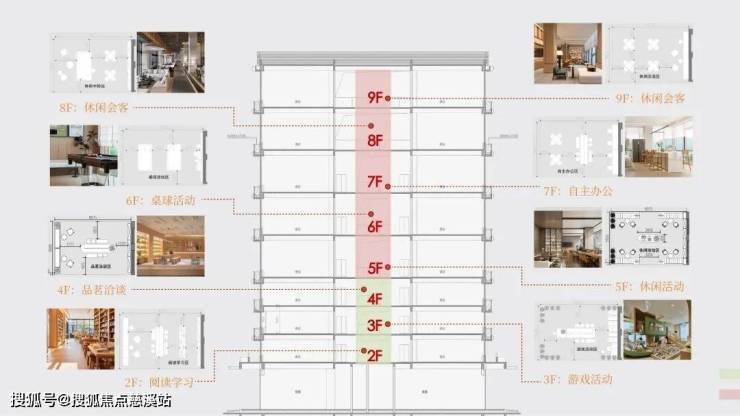 绿城·凤隐山海基于“楼上生活,楼下工作”职住一体的复合,LOFT/SOHO公共空间围绕工作·生活·社交三大主题,打造的共享“垂直浮岛”,每层融入阅读、游戏、品茗、办公等不同主题空间,真正实现让工作充满灵感,生活自有节奏。