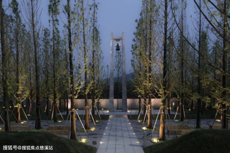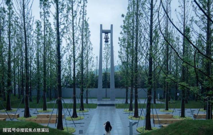 设计利用周界的自然高差,隔绝了城市的喧嚣,人们在水杉林下的自然栖息,让作为场地精神图腾的钟塔传达与生活的共鸣。