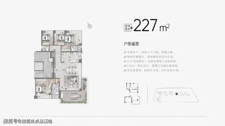 5座为42层高大平层,专梯专户,面积为223/227㎡,带装修报3.3-3.5万/㎡,越高越贵。