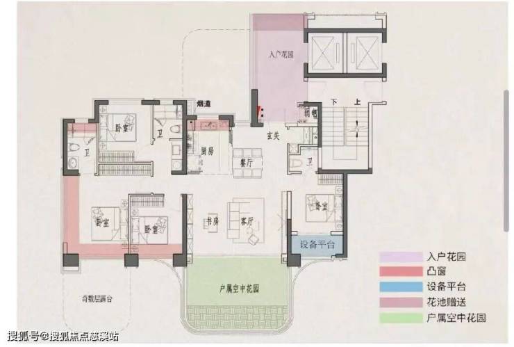 2、超四代住宅,南北双花园,奇数层3个、偶数层4个外挂!(2个露台、入户花园、阳台);