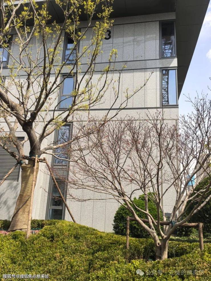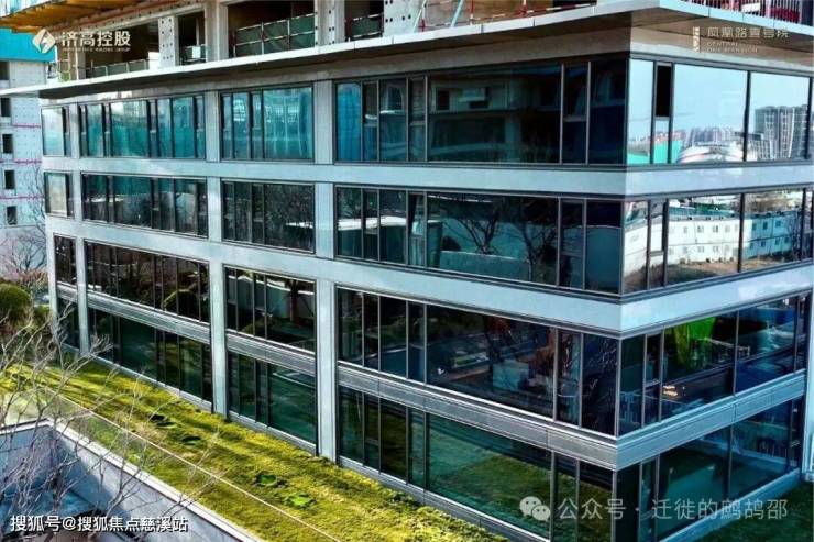 外立面:石材+铝板+玻璃幕墙组合,窗墙比70%,LOW-E三玻两腔玻璃(隔音降噪)。