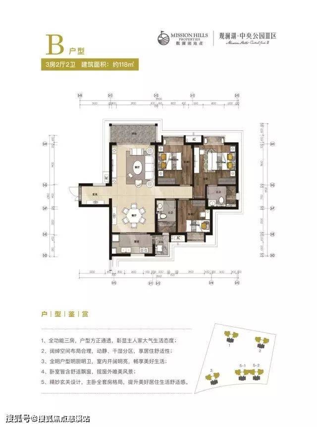 中央公园3区,匠心设计约63㎡南向两房、约118㎡全功能通透三房,小户型实用温馨,大户型舒适大气;户型整体格局皆方正,空间利用合理;皆含景观阳台、飘窗,保证室内通风及采光,保证居住舒适性。